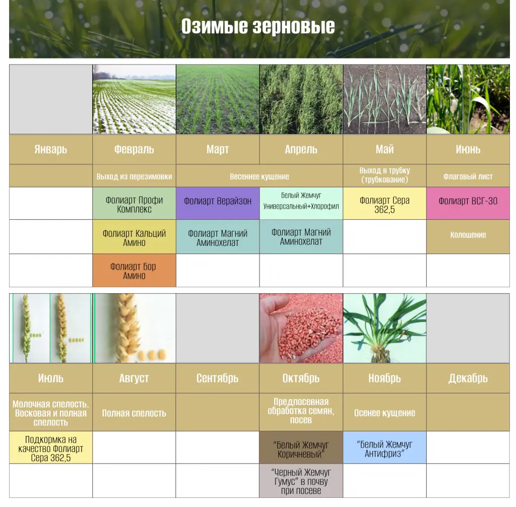 На сегодняшний день озимая пшеница является одной из наиболее ценных и урожайных зерновых культур. Благодаря высокому содержанию клейковины, белков и других ценных веществ озимая пшеница используется для широкого спектра продовольственных целей, в том числе в крупяной, макаронной, хлебопекарной и кондитерской промышленности. Безопасное возделывание сельскохозяйственных культур требует понимания их особенностей, соблюдения основных правил посева и ухода, контроль на всех этапах роста и развития растения. В нашем сельскохозяйственном календаре можно найти рекомендации по питанию на различных фазах роста и вегетации.